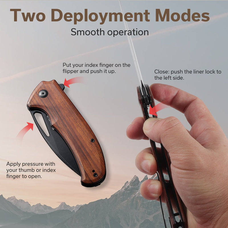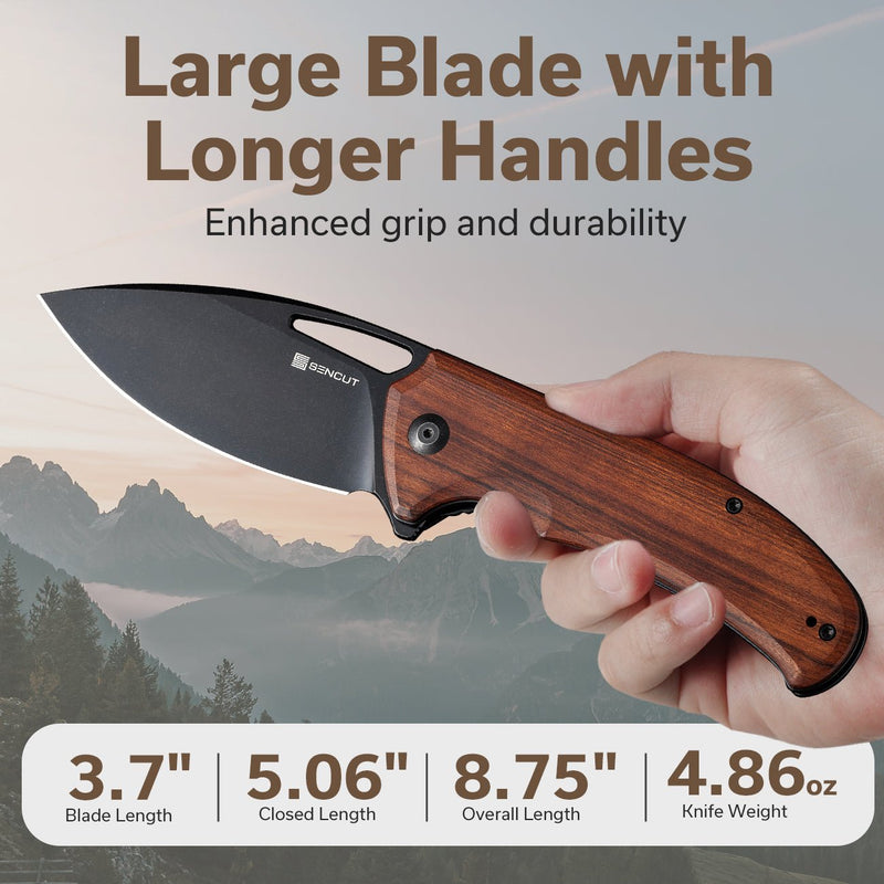 Sencut Phantara Flipper Thumb Hole Knife Wood Handle 9cr18mov Blade